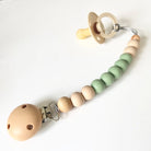 Made from the same silicone beads as the teething jewellery with two natural wooden beads at either end. The dummy clips not only stop your little ones from dropping their dummies they look great as well!