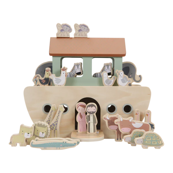 The Little Dutch Noah's Ark Play Set in Multi allows little ones to play the story of Noah's Ark. Help the animals find each other and get ready for their journey. Each passenger has a matching friend to travel with.