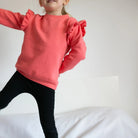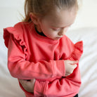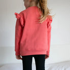 This Deep coral sweatshirt features a gorgeous frill detailing on each sleeve.
